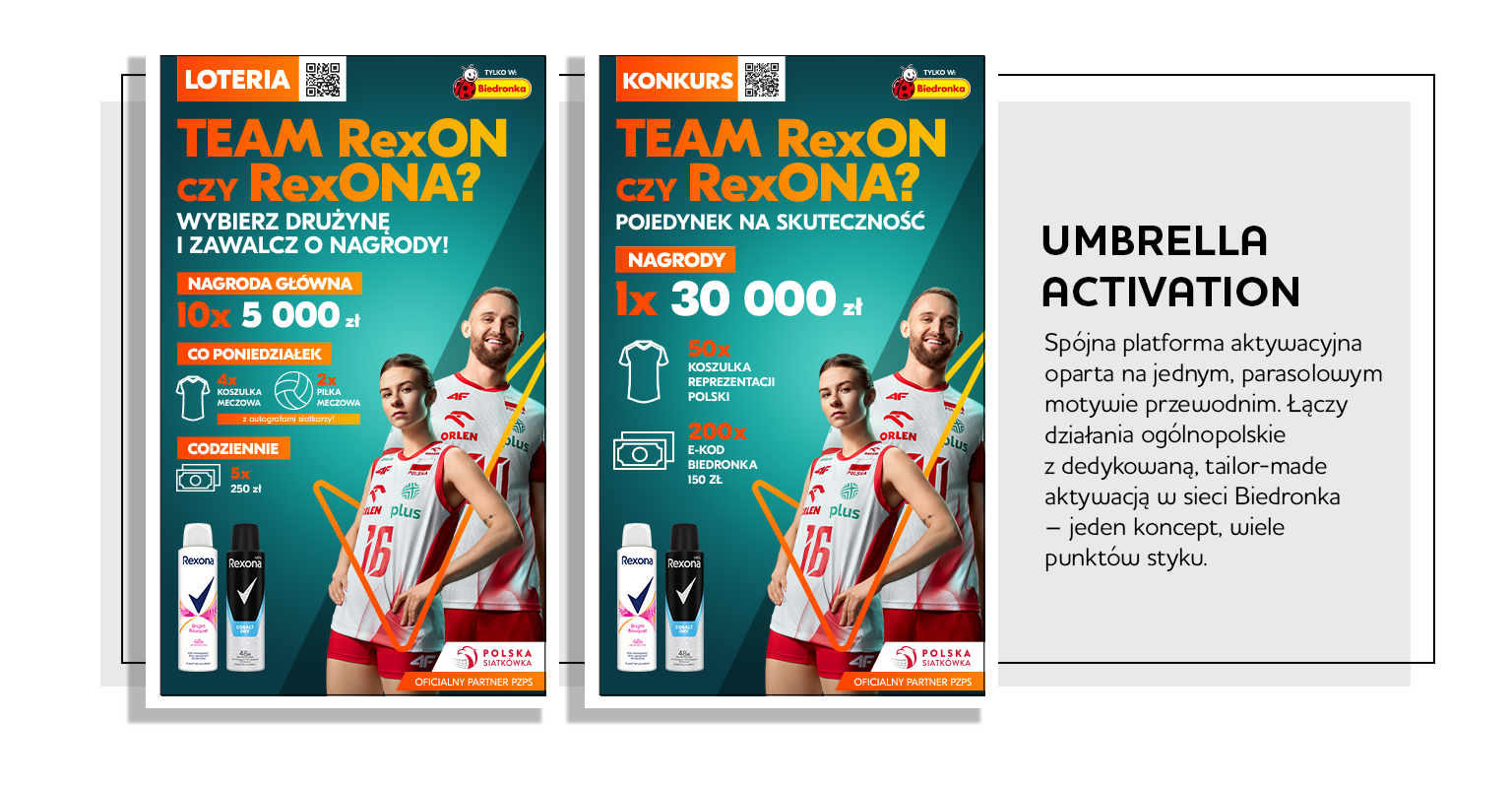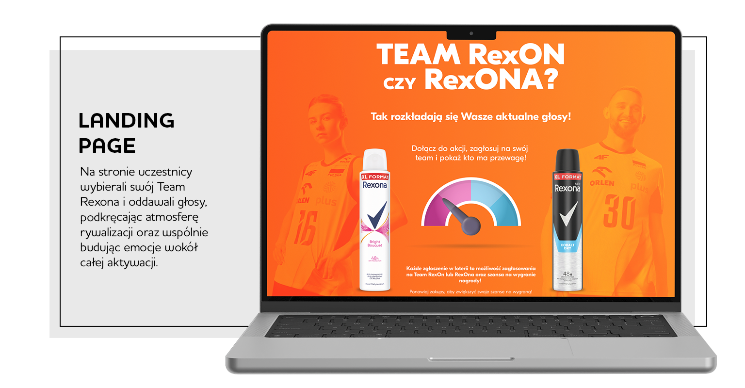 Stworzyliśmy platformowy koncept aktywacyjny wspierający całe portfolio Rexona. Oparliśmy go na idei rywalizacji „one vs oni”, gdzie uczestnicy wybierali swój team i angażowali się w zabawę.
